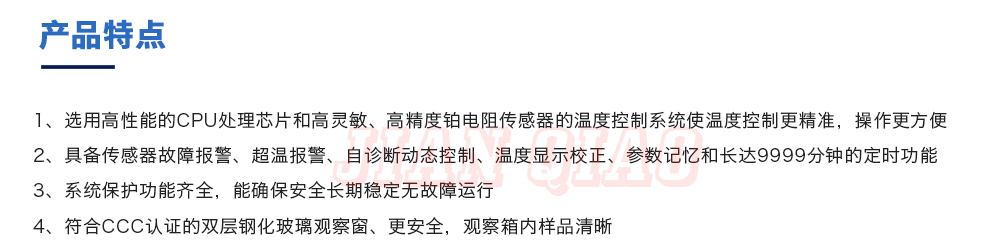 產(chǎn)品型號:JQ-9640 品牌:劍 喬 用途:精密高溫箱用于對電子電工、汽車摩托、航空航天橡膠、塑膠、金屬、船舶兵器、高等院校、科研單位等相關產(chǎn)品的零部件及材料在高溫恒溫變化的情況下,檢驗其各項性能指標。咨詢熱線:13829135130