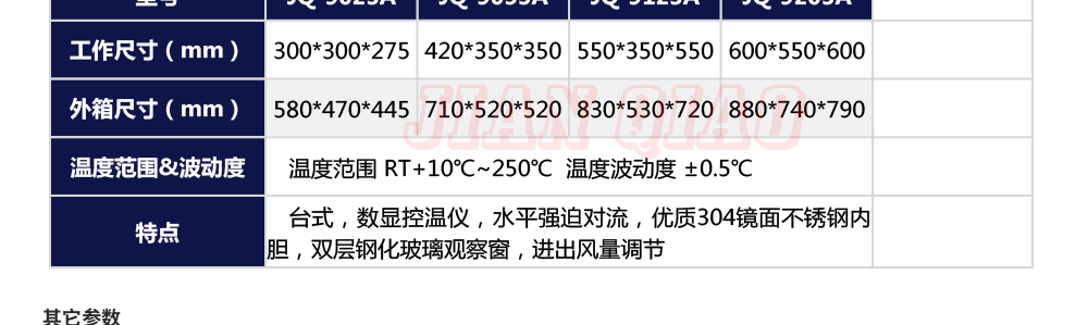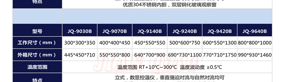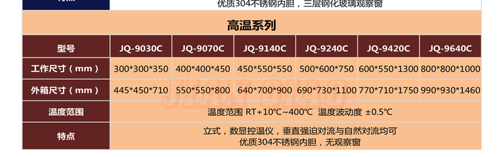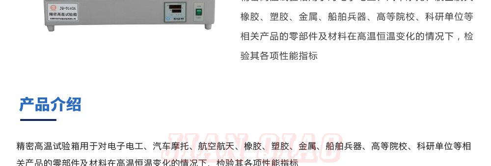 產(chǎn)品型號:JQ-9030 品牌:劍 喬 用途:精密高溫試驗(yàn)箱用于對電子電工、汽車摩托、航空航天、橡膠、塑膠、金屬、船舶兵器、高等院校、科研單位等相關(guān)產(chǎn)品的零部件及材料在高溫恒溫變化的情況下,檢驗(yàn)其各項(xiàng)性能指標(biāo)咨詢熱線:13829135130