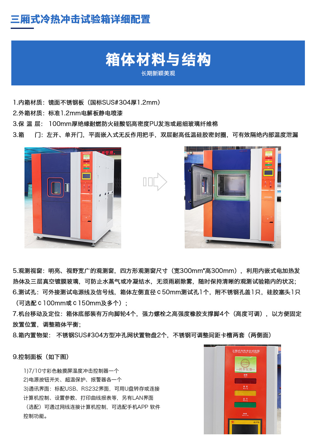 用途:三箱式冷熱沖擊試驗箱又名溫度沖擊試驗或高低溫沖擊試驗是用于考核產(chǎn)品對周圍環(huán)境溫度急劇變化的適應性,裝備設計定型的鑒定試驗和批產(chǎn)階段的例行試驗中不可缺少的試驗,在有