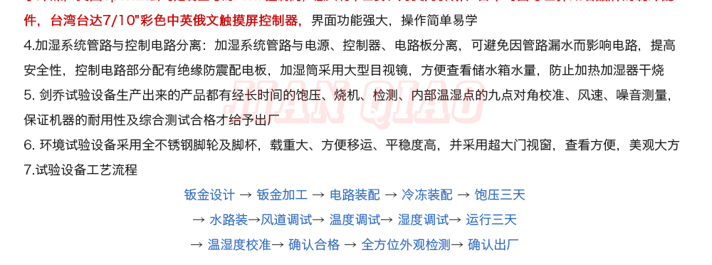 產(chǎn)品型號:JQWI-12(非標定制款) 品牌:劍 喬 用途:步入式恒溫恒濕試驗室可為汽車、大型部件、大尺寸半成品和成品模擬特定的環(huán)境條件。如樣品評估、研發(fā)測試生產(chǎn)測試,加速壓力測試,可靠性測試,故障分析,以及其他需要環(huán)境模咨詢熱線:13829135130