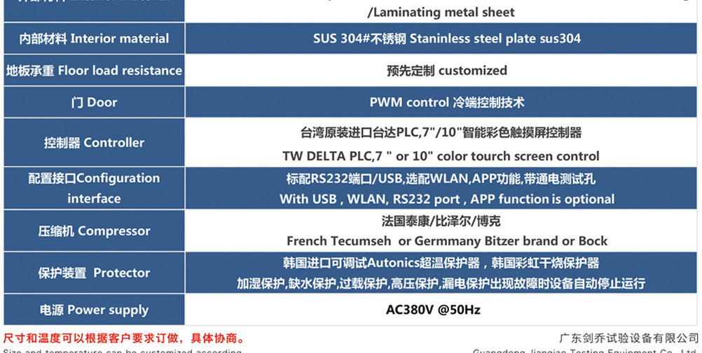 產(chǎn)品型號(hào):JQWI-12 品牌:劍 喬 用途:步入式恒溫恒濕試驗(yàn)室可為汽車、大型部件、大尺寸半成品和成品模擬特定的環(huán)境條件。如樣品評(píng)估、研發(fā)測(cè)試生產(chǎn)測(cè)試,加速壓力測(cè)試,可靠性測(cè)試,故障分析,以及其他需要環(huán)境模咨詢熱線:13829135130