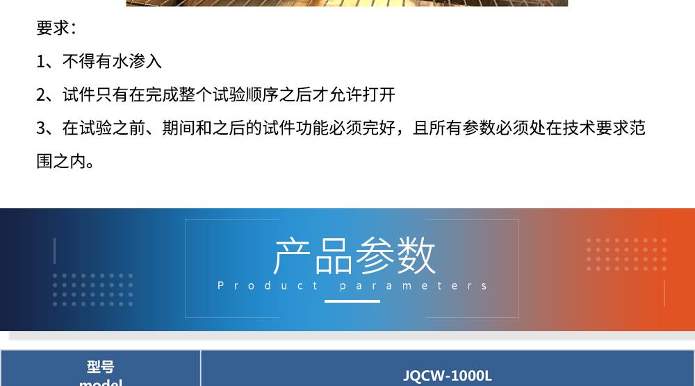 產(chǎn)品型號:JQCW-1000L 品牌:劍 喬 用途:冰水沖擊試驗(浪涌水的溫度沖擊試驗)是模擬部件在駛過積水時而產(chǎn)生的浪涌水的負荷情況,保證部件由于水而急劇冷卻情況下的功能穩(wěn)定性。如車輛在冬季有水路面駕駛時冰水濺落到熱的系統(tǒng)/組件上,失效模式為不同的溫度膨脹系數(shù)導(dǎo)致的材料機械破裂或密封失效咨詢熱線:13829135130