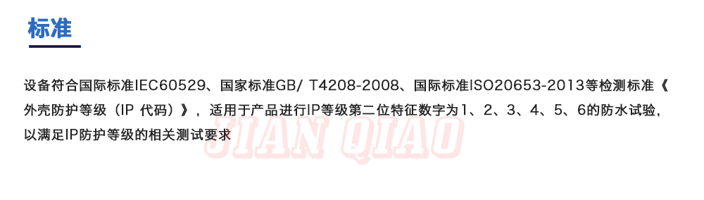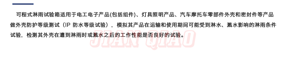 產(chǎn)品型號(hào):IPX-1234 品牌:劍 喬 用途:可程式淋雨試驗(yàn)箱適用于電工電子產(chǎn)品(包括組件)、燈具照明產(chǎn)品、汽車摩托車零部件外殼和密封件等產(chǎn)品做外殼防護(hù)等級(jí)測(cè)試(IP 防水等級(jí)試驗(yàn)),模擬其產(chǎn)品在運(yùn)輸和使用期間可能受咨詢熱線:13829135130