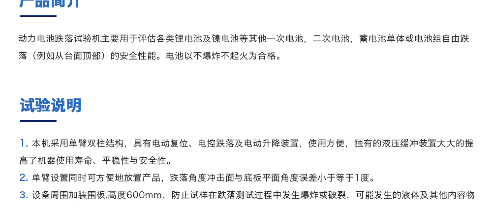 產(chǎn)品型號:JQ-315ST 品牌:劍 喬 用途:動力電池跌落試驗機主要用于評估各類鋰電池及鎳電池等其他一次電池,二次電池,蓄電池單體或電池組自由跌落(例如從臺面頂部)的安全性能。電池以不爆炸不起火為合格。咨詢熱線:13829135130
