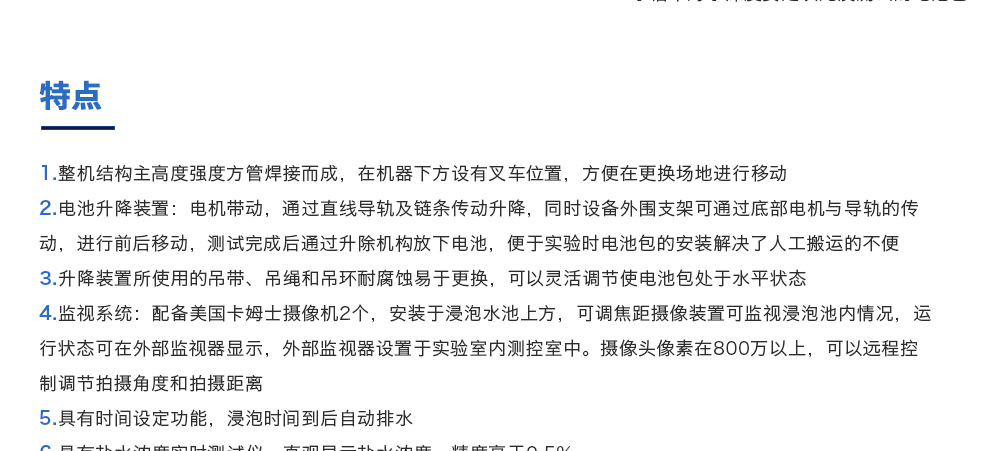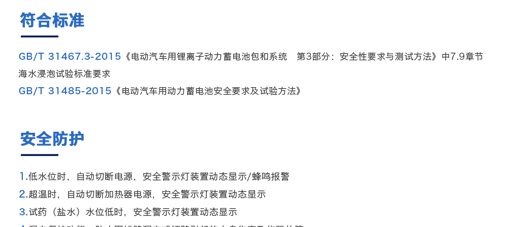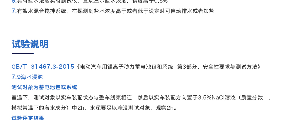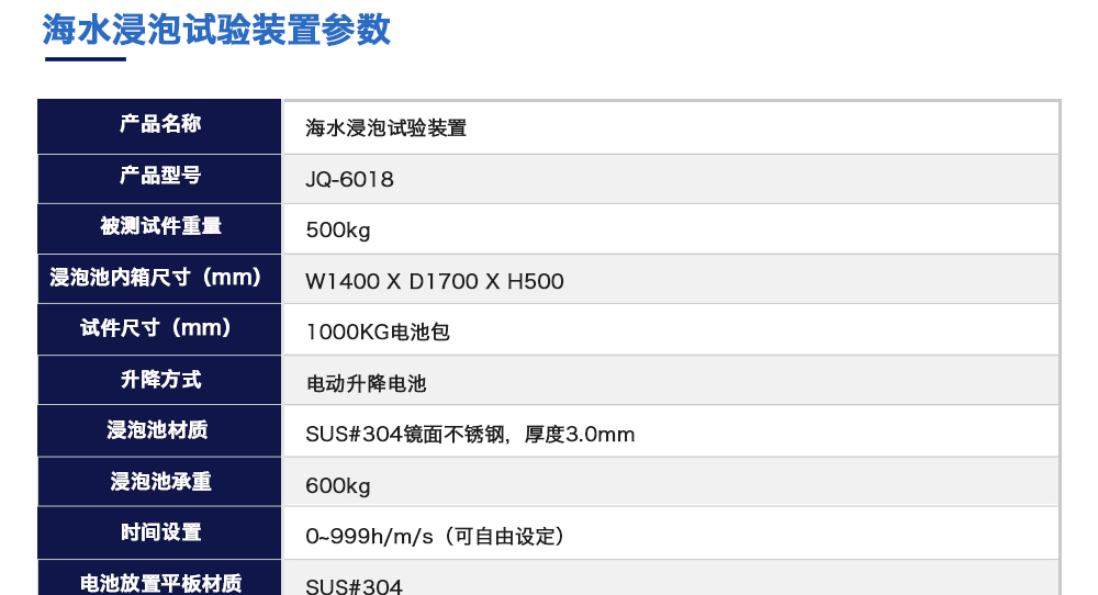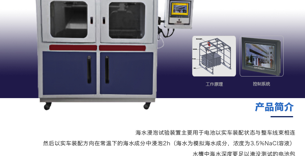 產(chǎn)品型號:JQ-6018 品牌:劍 喬 用途:海水浸泡試驗裝置主要用于電池以實(shí)車裝配狀態(tài)與整車線束相連然后以實(shí)車裝配方向在常溫下的海水成分中浸泡2h(海水為模擬海水成分,濃度為3.5%NaCl溶液)水槽中海水深度要足以淹咨詢熱線:13829135130