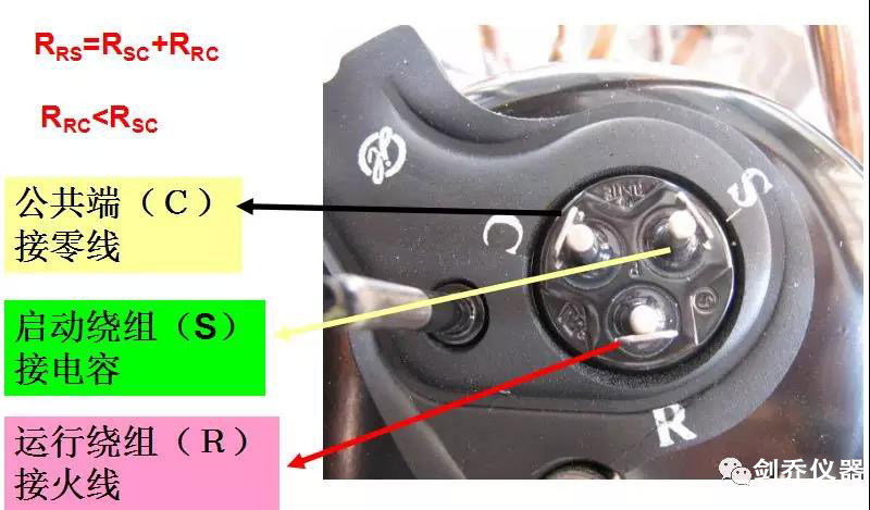 運(yùn)行端(R),啟動(dòng)端(S),公共端(C),RS間的電阻大于SC間的電阻大于RC間的電阻。RS間電阻等于SC間電阻加RC間的電阻。利用上述規(guī)律可以予以判別。需要說明的是三相壓縮機(jī)的接線端子電阻值是相等的。