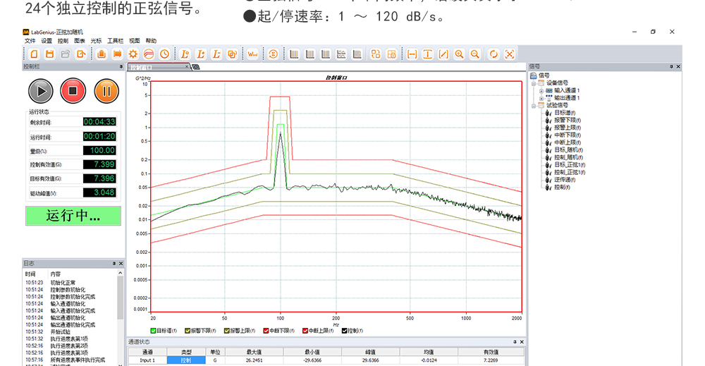 產(chǎn)品型號(hào): JQ-10002 品牌:劍 喬 用途:正弦試驗(yàn)可以控制振動(dòng)臺(tái)實(shí)現(xiàn)定頻(駐留)、掃頻等振動(dòng)試驗(yàn)??刂扑惴ㄖ胁捎昧烁櫈V波的幅值以及相位檢測(cè)算法,可以實(shí)現(xiàn)對(duì)控制信號(hào)的準(zhǔn)確反饋以及實(shí)時(shí)的閉環(huán)控制。咨詢熱線:13829135130