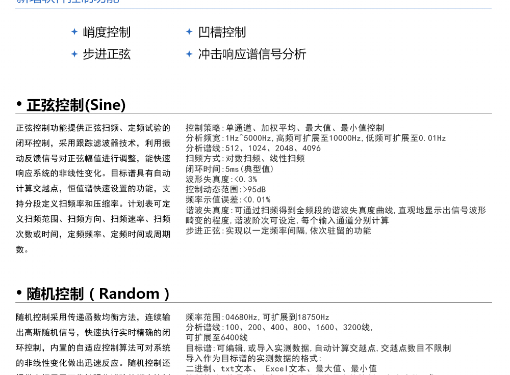 產(chǎn)品型號(hào):JQVT-9000系列 品牌:劍 喬 用途:振動(dòng)控制器可實(shí)現(xiàn)全系列振動(dòng)模式,包括隨機(jī)控制、正弦控制,典型沖擊控制、沖擊響應(yīng)譜控制、復(fù)合振動(dòng)、路譜仿真以及地震波模擬。同時(shí),為了進(jìn)一步創(chuàng)新振動(dòng)控制技術(shù),以適應(yīng)更咨詢熱線:13829135130