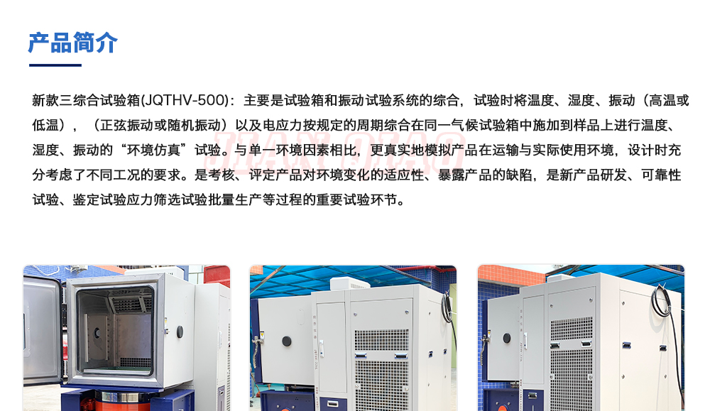 產(chǎn)品型號:JQTHV-500 品牌:劍 喬 用途:新款三綜合試驗(yàn)箱(JQTHV-500):主要是試驗(yàn)箱和振動試驗(yàn)系統(tǒng)的綜合,試驗(yàn)時將溫度、濕度、振動(高溫或低溫),(正弦振動或隨機(jī)振動)以及電應(yīng)力按規(guī)定的周期綜合在同一氣候試驗(yàn)箱中。咨詢熱線:13829135130