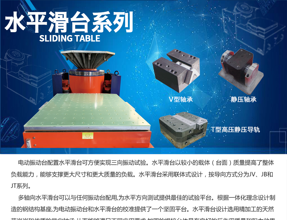 產(chǎn)品型號:JV-03KN 品牌:劍 喬 用途:振動臺配置水平滑臺可以實現(xiàn)三向振動試驗,也可以配合溫濕試驗箱形成復合環(huán)境試驗系統(tǒng)。多軸向水平滑臺可以與任何振動臺配用,為水平方向測試提供最佳的試驗平臺。根據(jù)一體化理咨詢熱線:13829135130